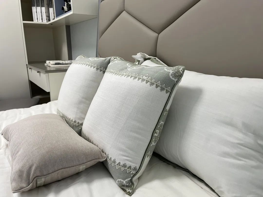 游走在床屏、床品、窗帘中,